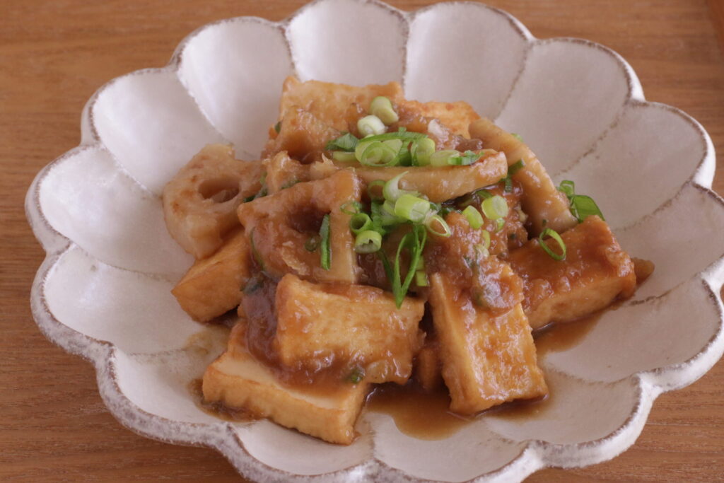 ほっと温まる、厚揚げとれんこんのみぞれ煮