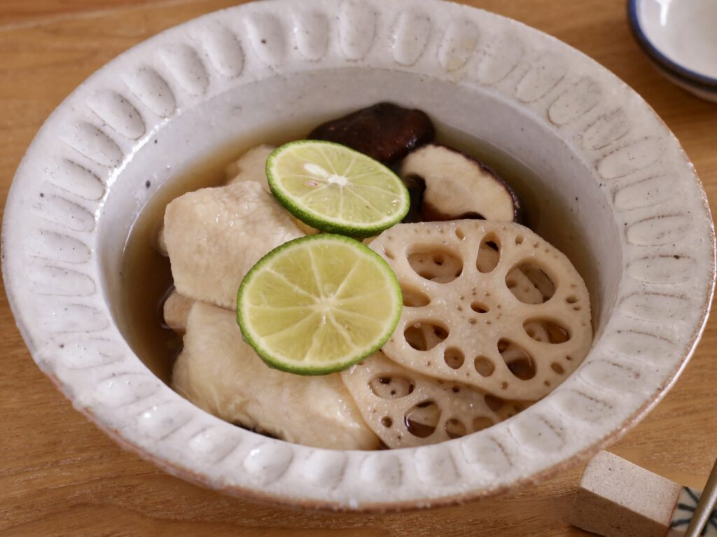 しっとり鶏むね肉とれんこん椎茸の出汁浸し