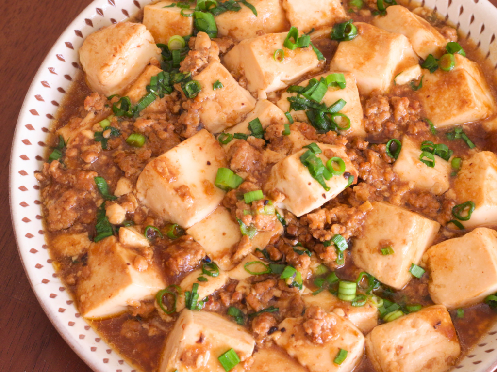 メニュー:麻婆豆腐、豆乳担々麺、青椒肉絲、餃子、豆乳甘酒杏仁豆腐