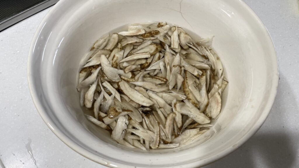 ⒈ごぼう→ささがきにし、水につけて水気をきる。
