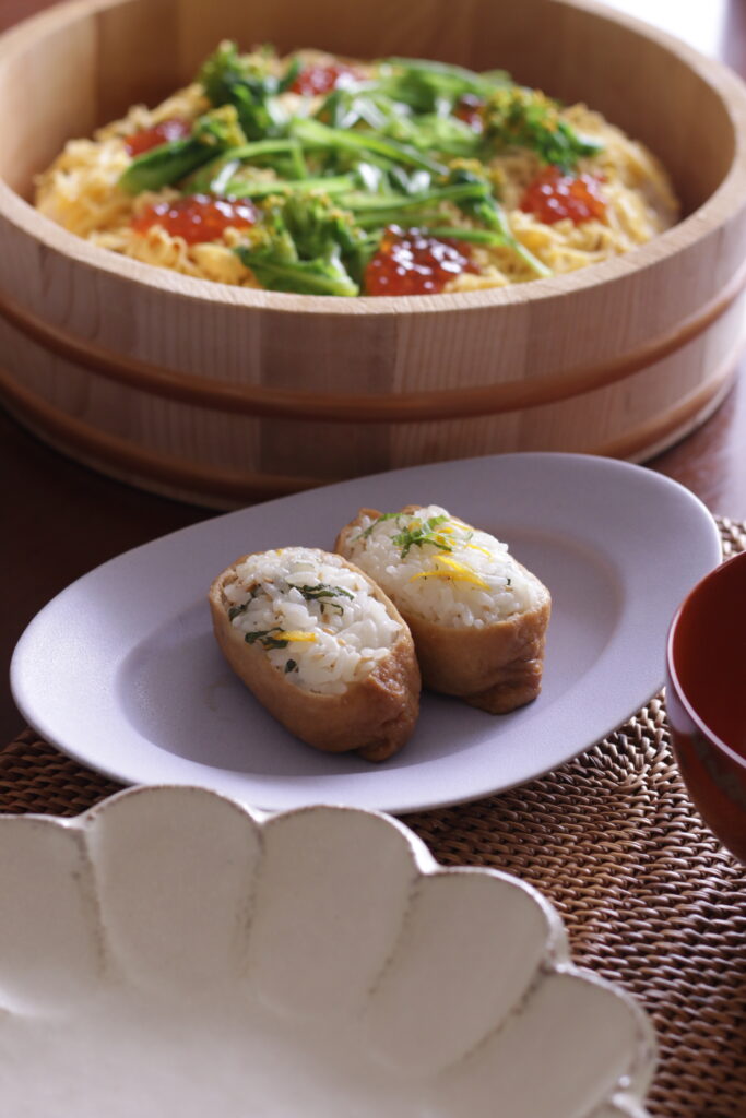 今回の「春の発酵ごはんレッスン」では、甘酒ちらし寿司とおいなりさんを作ります。