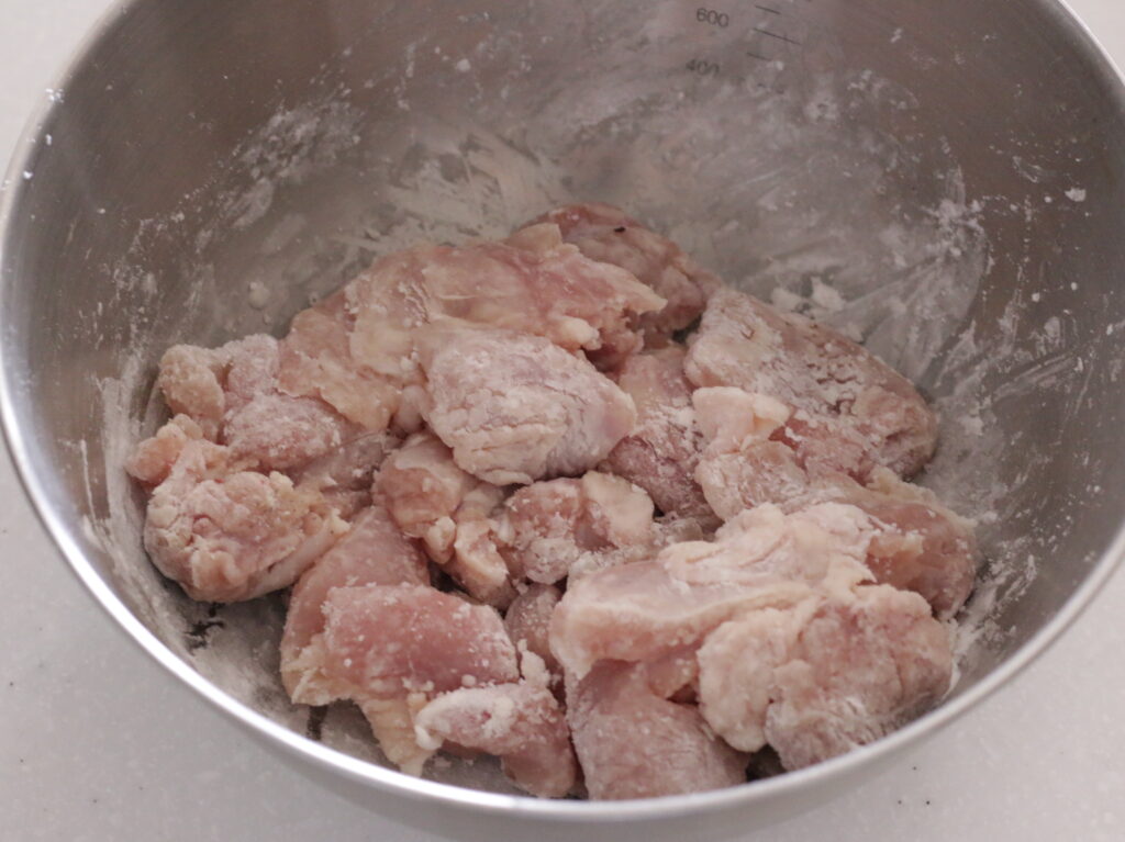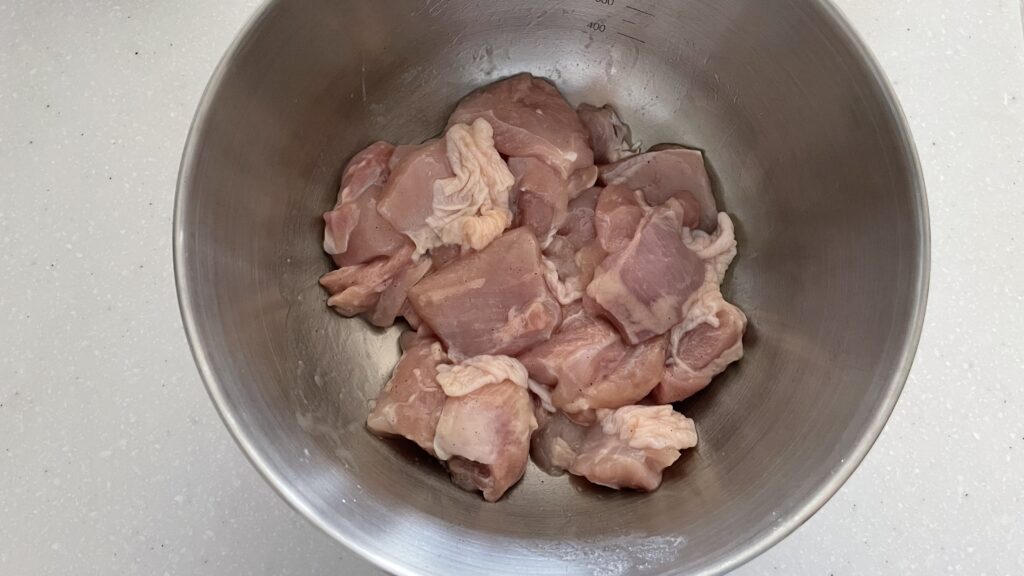 ⒉鶏肉は塩麹と胡椒で下味をつけます(20分以上おきます)